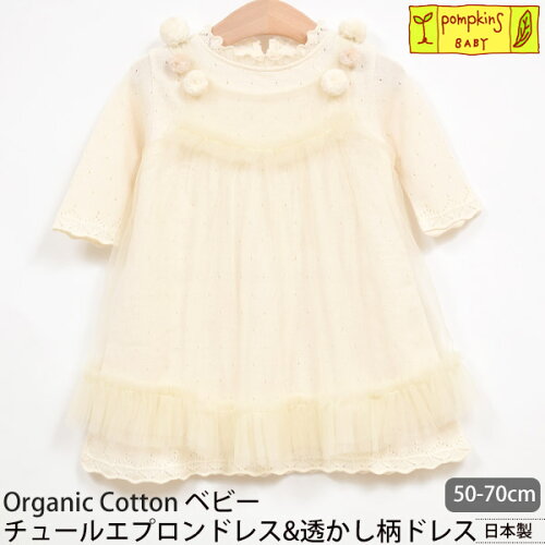 pompkinsBABY オーガニックコットン ベビー チュールエプロンドレス&透かし柄ドレス(長袖) | オーガニック コットン チュール セレモニードレス 結婚式 パーティー お呼ばれ ベビー 出産祝い お宮参り 赤ちゃん 女の子 ワンピース ナチュラル おめかし お出かけ